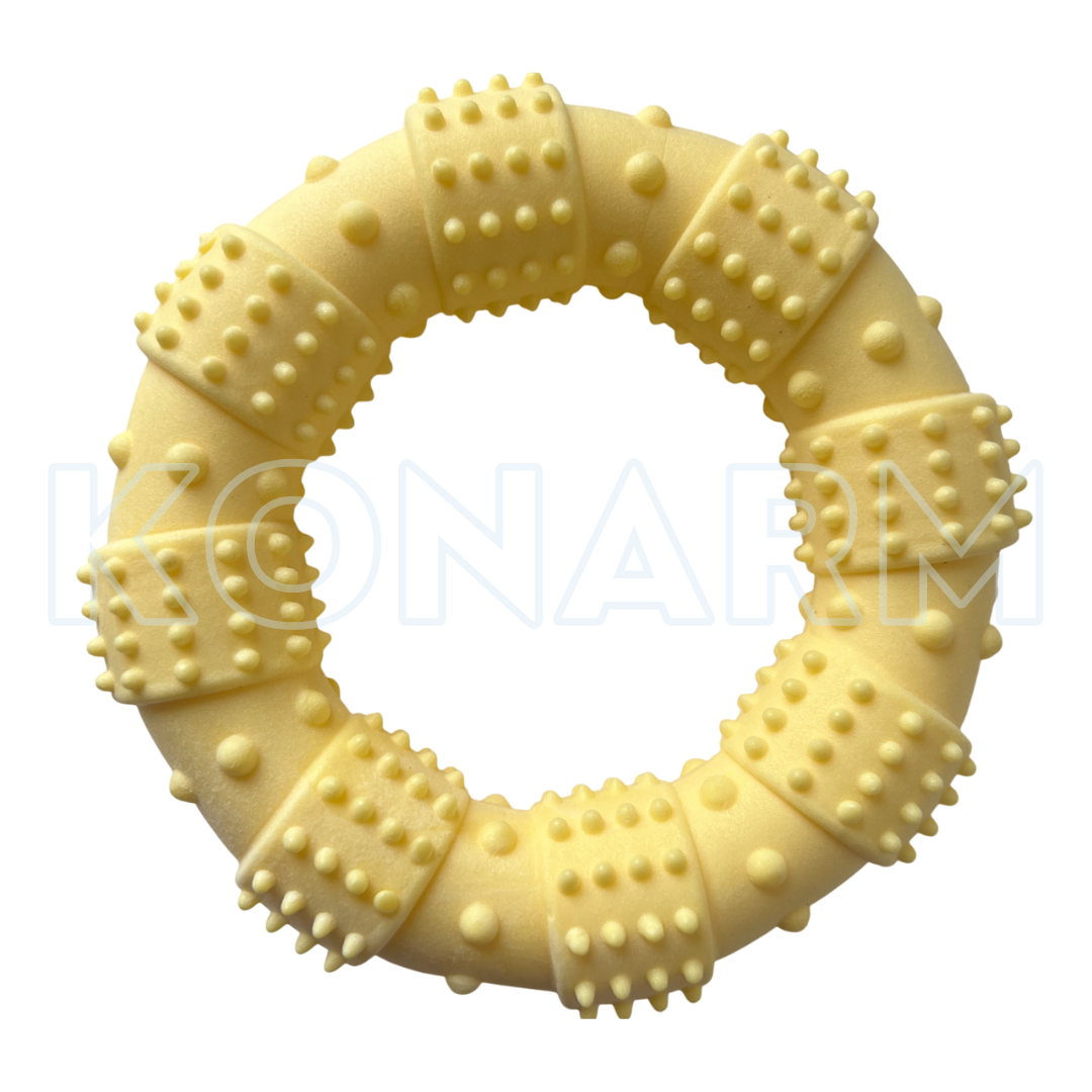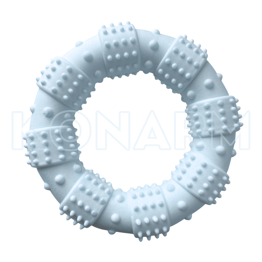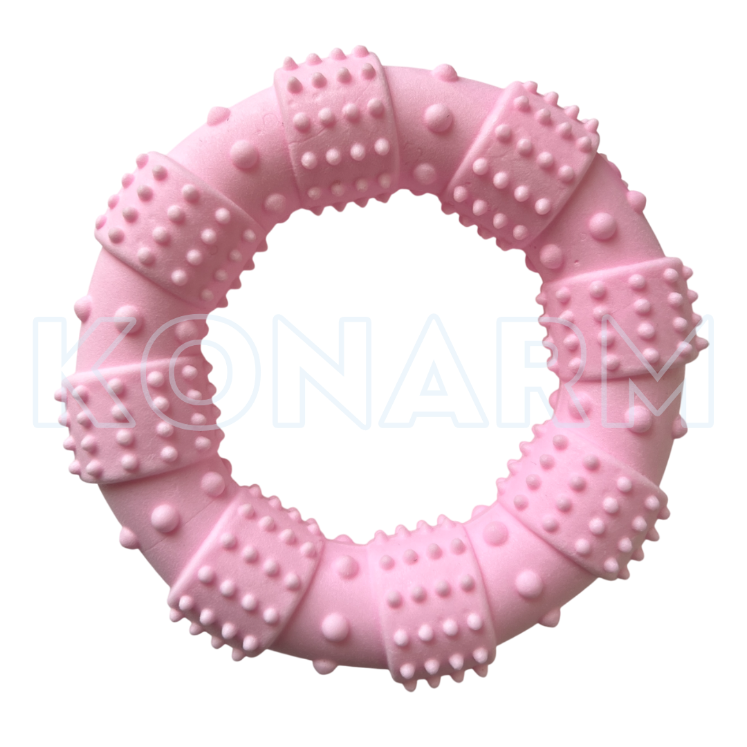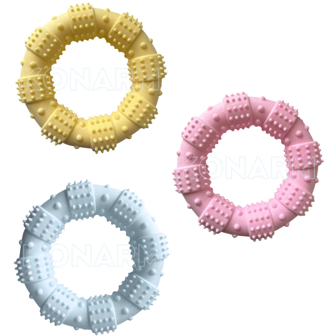 Diversión que cuida sus dientes: masticar, jugar y mantenerse feliz con su aro favorito.