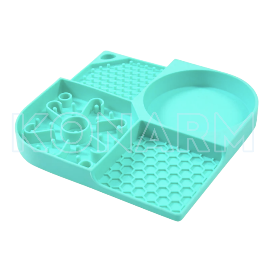 Tapete alimentador de 4 divisiones: antideslizante, práctico y divertido para que tu mascota disfrute su comida con orden y comodidad.