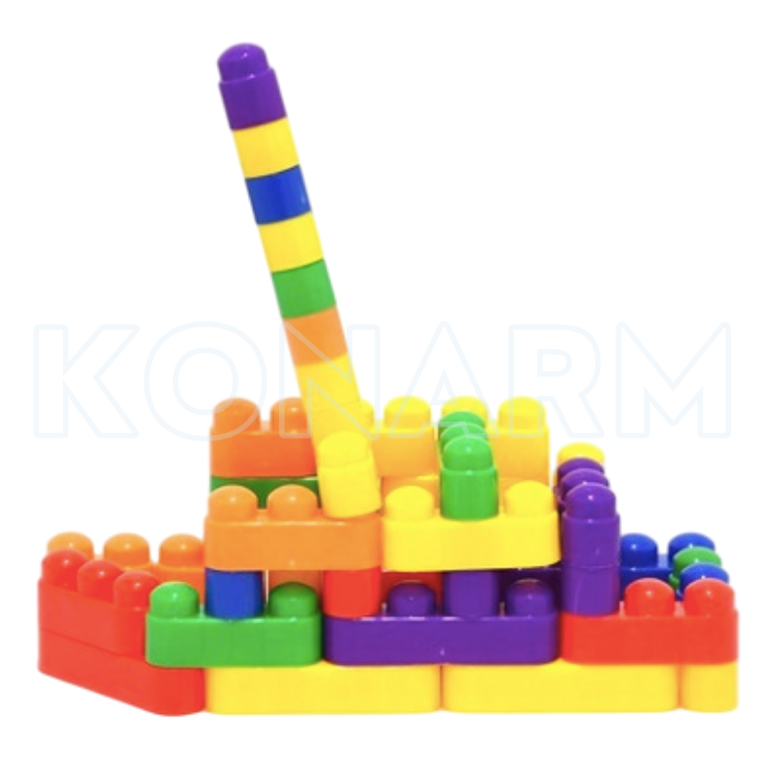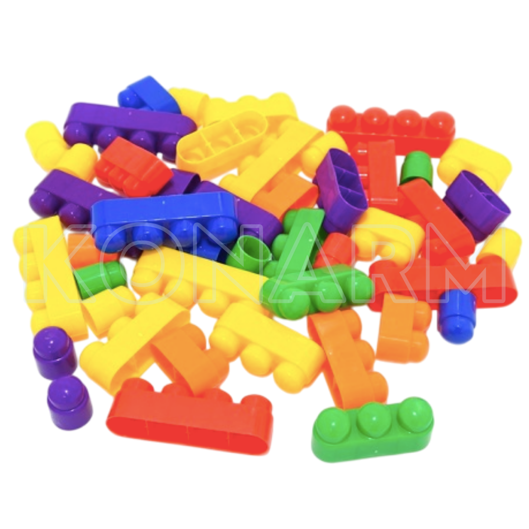 Set de piezas plásticas de colores que estimulan la creatividad, la coordinación ojo-mano y el pensamiento espacial mediante el juego libre.