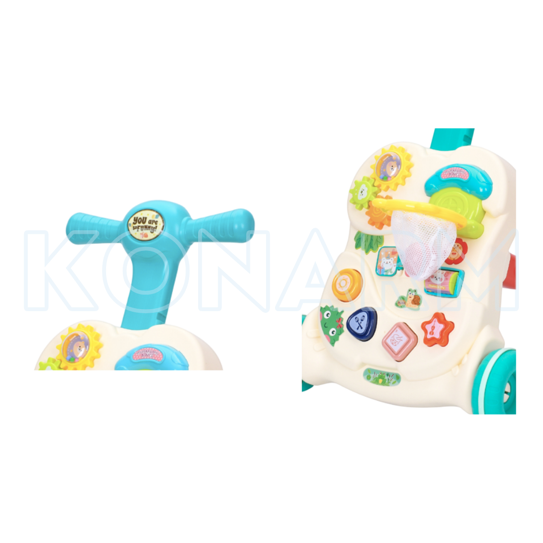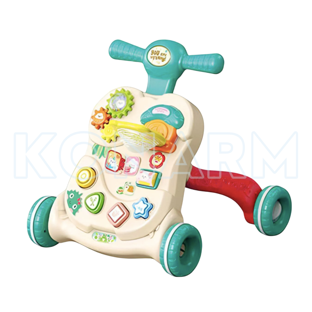 Diseñado para acompañar a tu bebé en su crecimiento, este caminador didáctico incluye un panel educativo con formas, engranajes, sonidos y juegos que promueven el desarrollo cognitivo y sensorial. Su estructura firme y ruedas seguras brindan confianza al caminar.