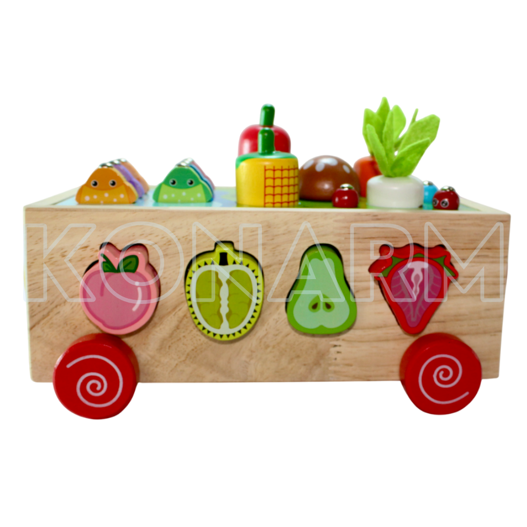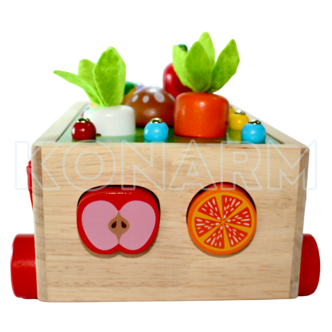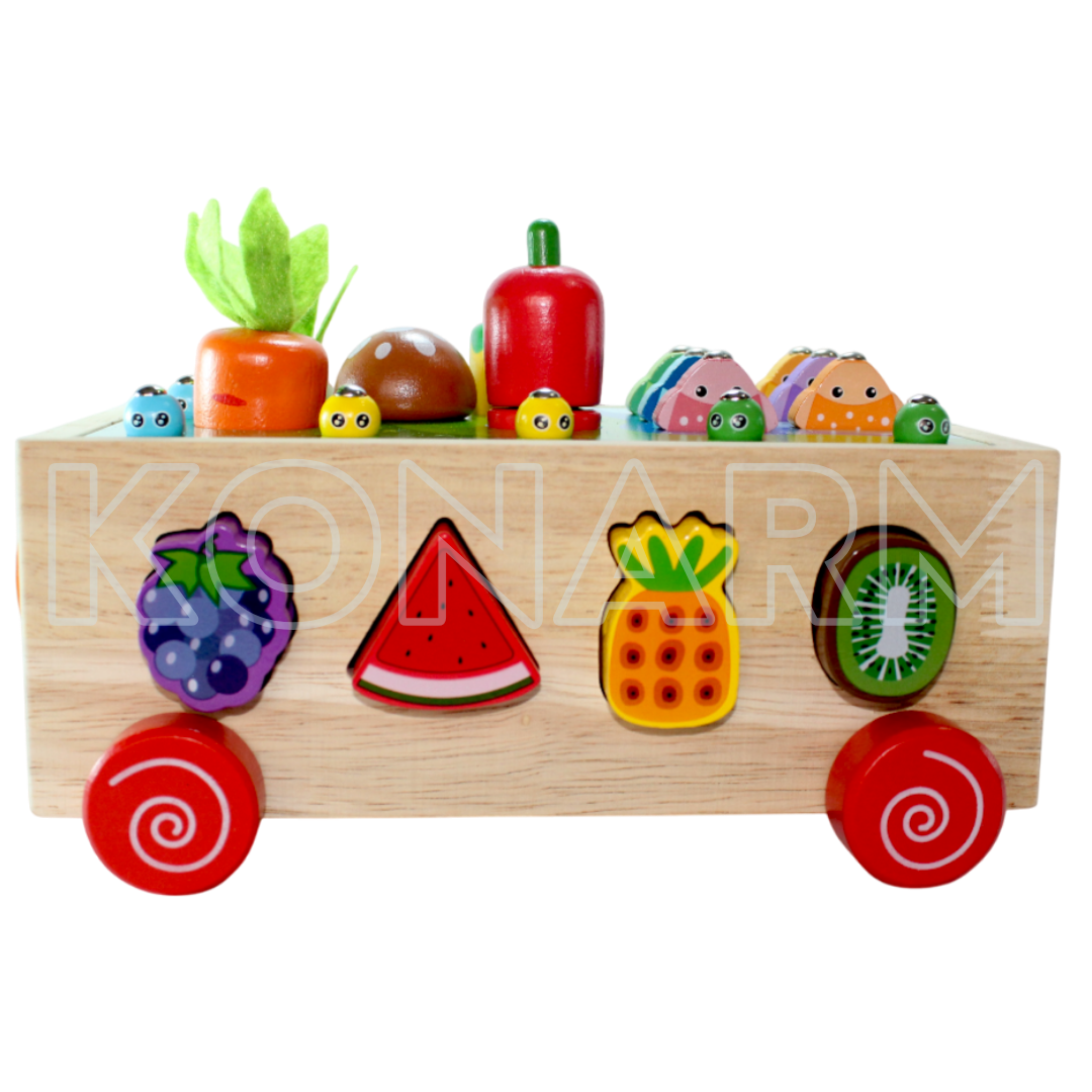 Carrito Didáctico de Madera Montessori Frutas & Verduras 4 en 1
