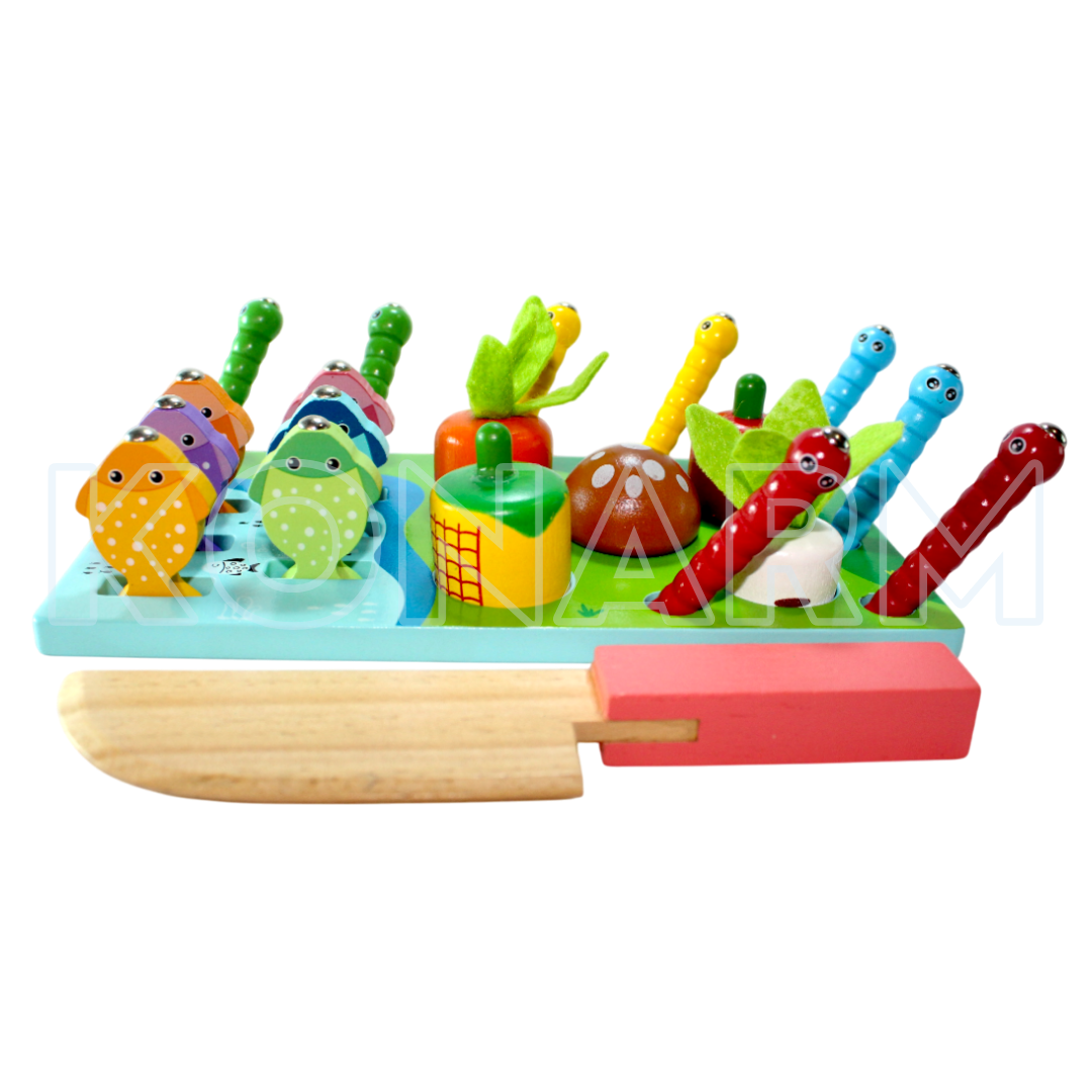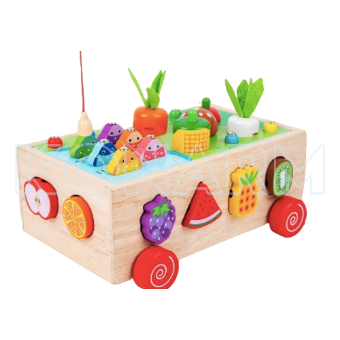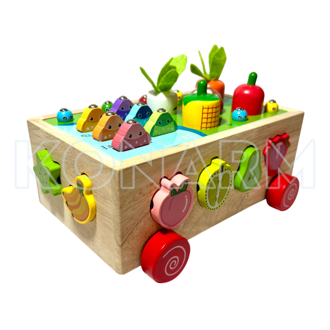 Carrito Didáctico de Madera Montessori Frutas & Verduras 4 en 1