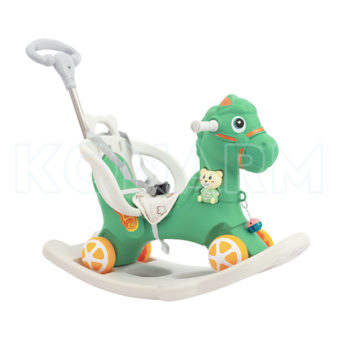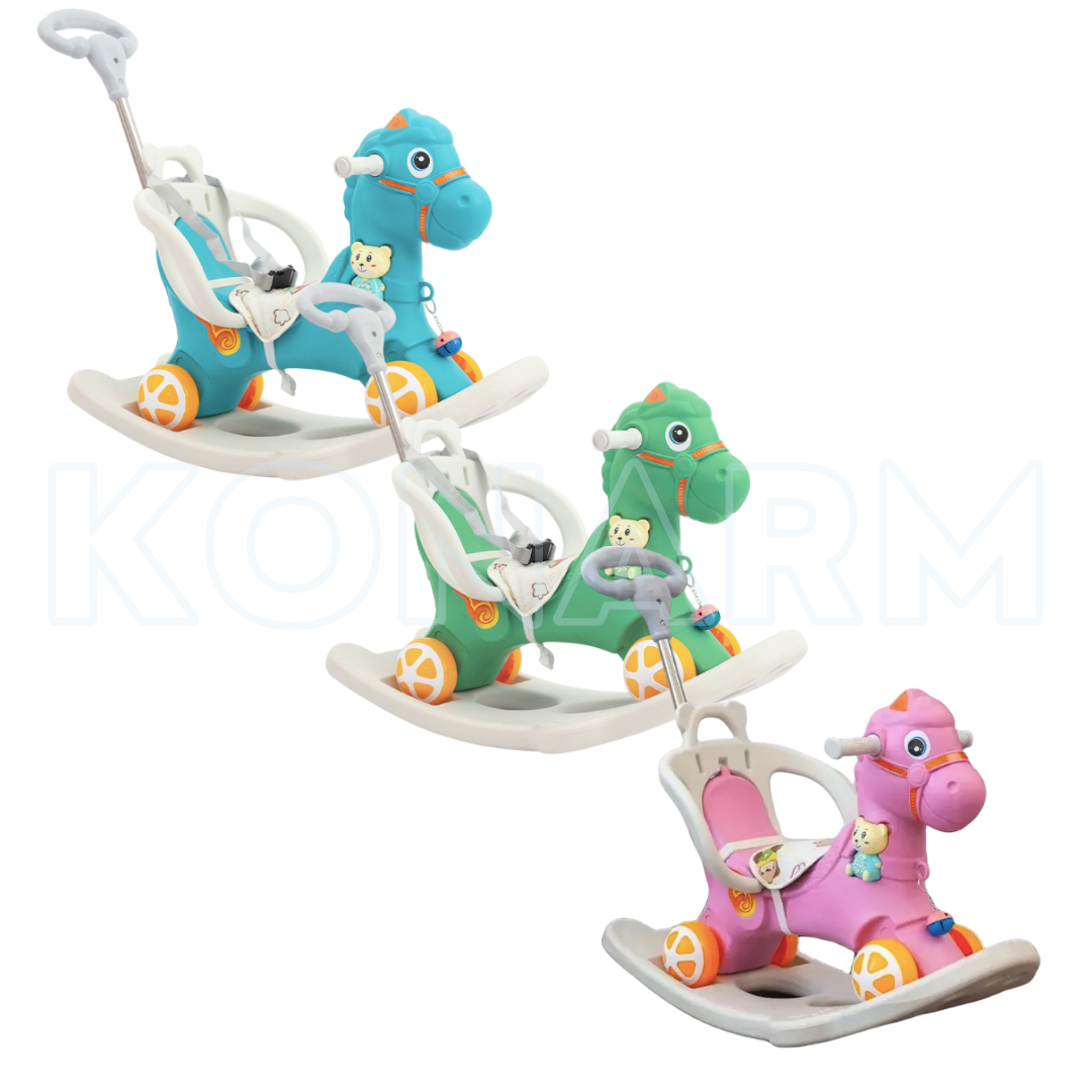 Este caballito balancín de plástico transformable es ideal para que los niños disfruten de horas de juego seguro y activo.