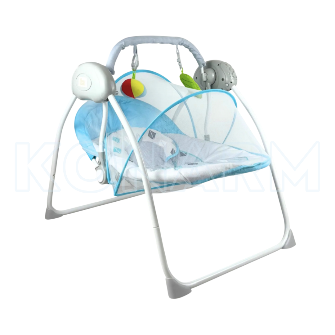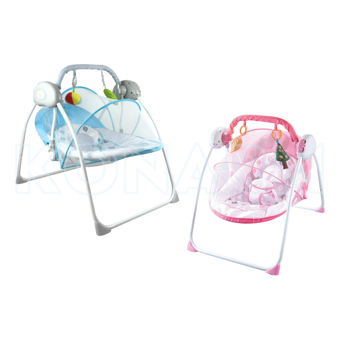 Diseñada para adaptarse a cualquier espacio y facilitar tu rutina diaria, esta mecedora columpio compacta con control remoto y toldo es la aliada perfecta para calmar, entretener y brindar descanso seguro a tu bebé.