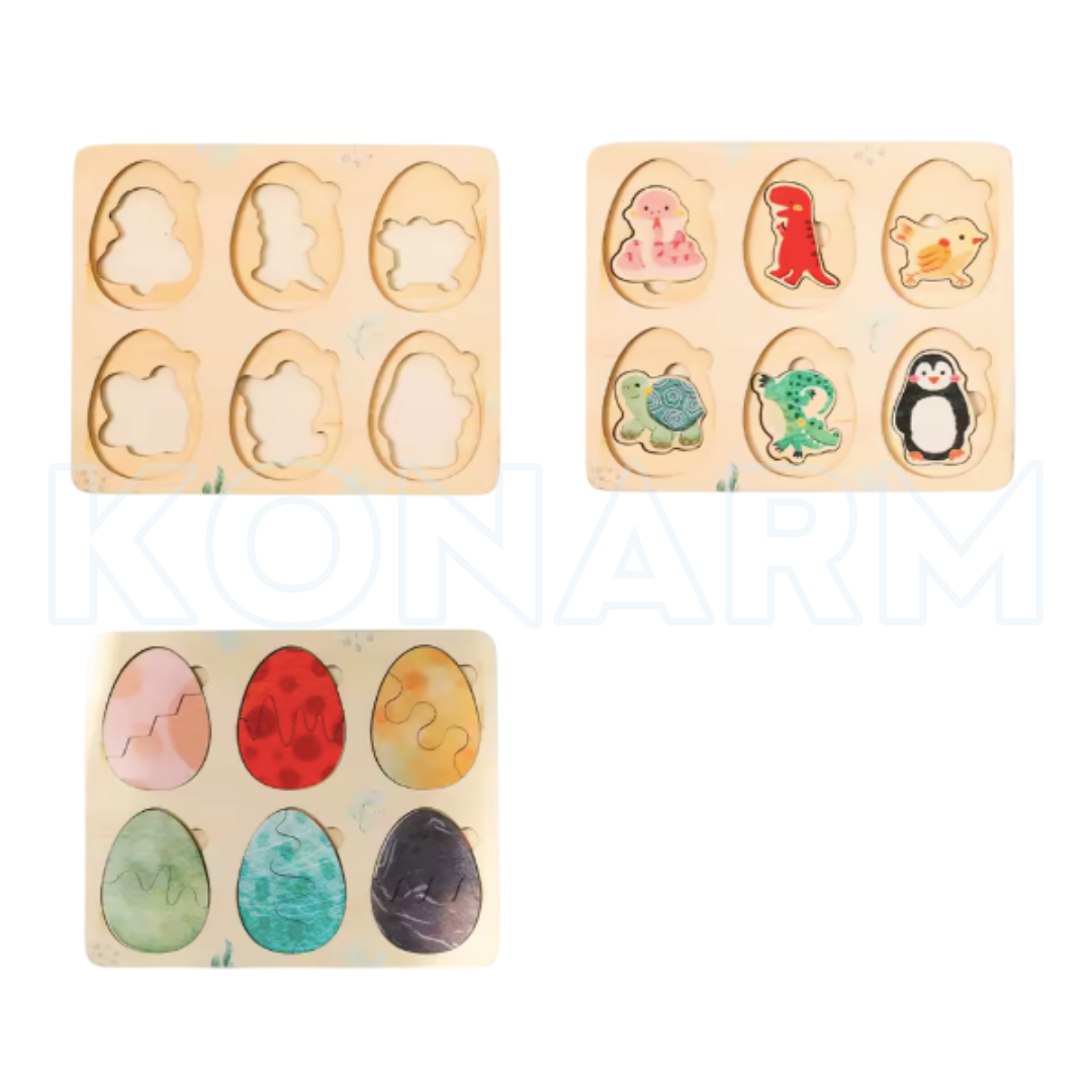 Rompecabezas de encaje con figuras de animales saliendo del huevo, perfectos para desarrollar la lógica, la observación y la motricidad fina.