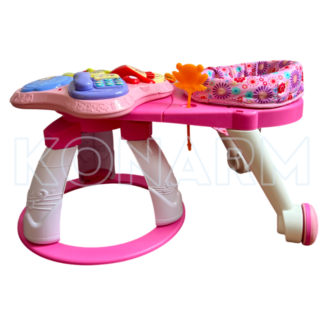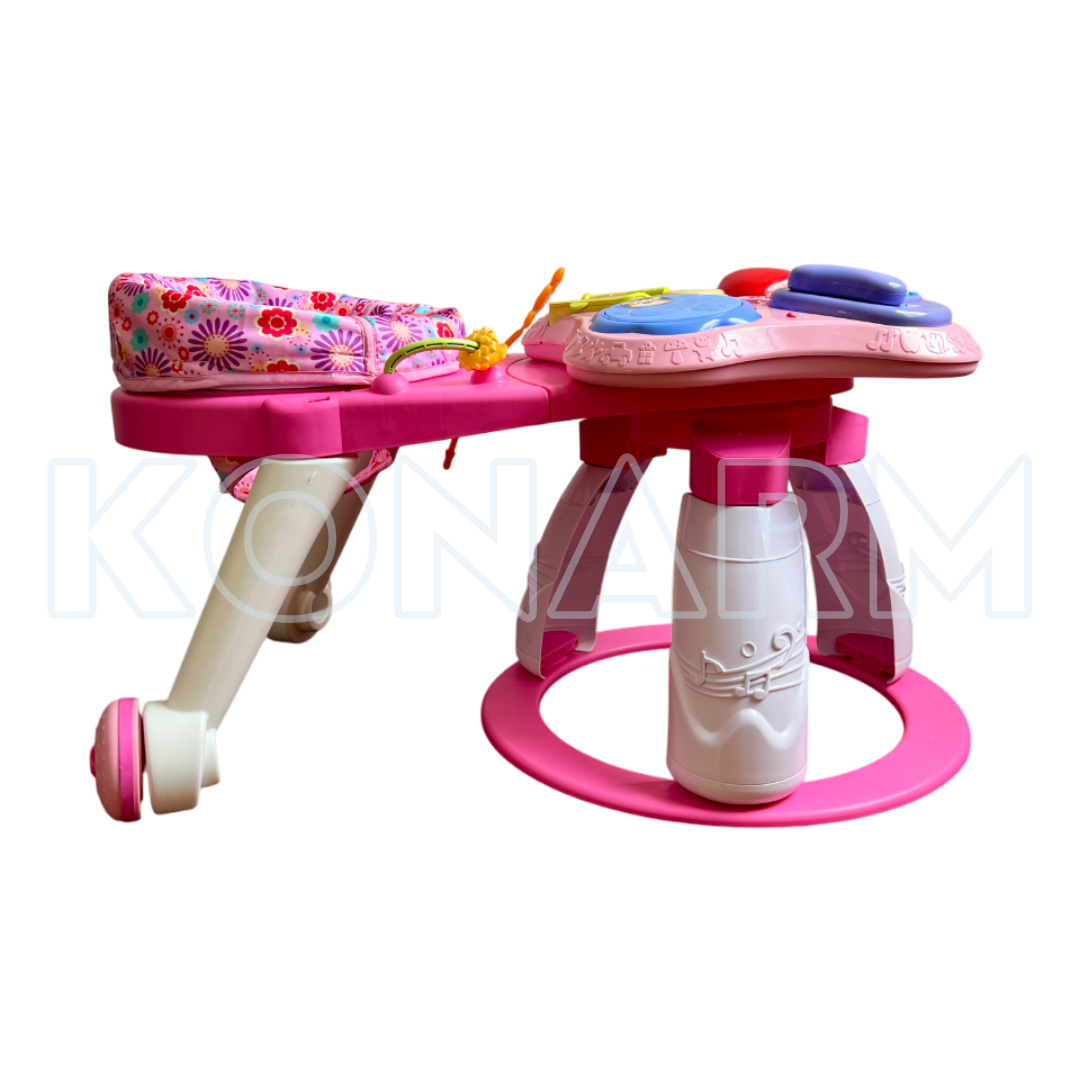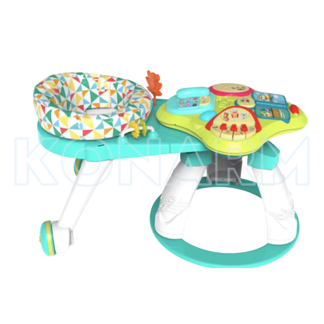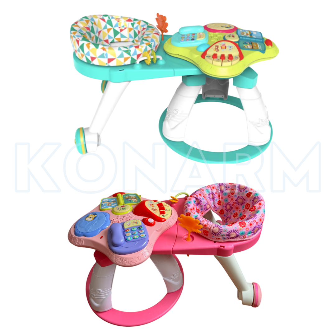Este práctico andador combina la movilidad con una bandeja de juegos interactivos que estimulan el desarrollo del bebé mientras se entretiene.