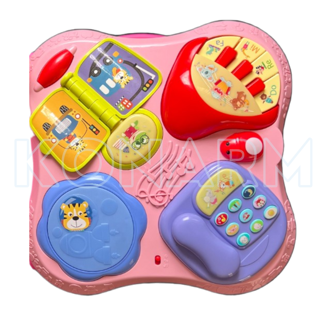 - Bandeja desmontable con sonidos, luces y juguetes
