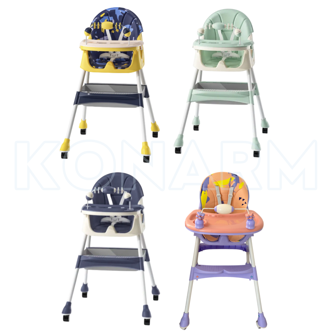 Este modelo clásico incorpora un respaldo acolchado con diseños coloridos y una estructura robusta. Ideal para familias activas que buscan una silla práctica y fácil de limpiar. Incluye bandeja removible, cinturón de seguridad y estructura plegable. Disponible en varios colores y estampados alegres.