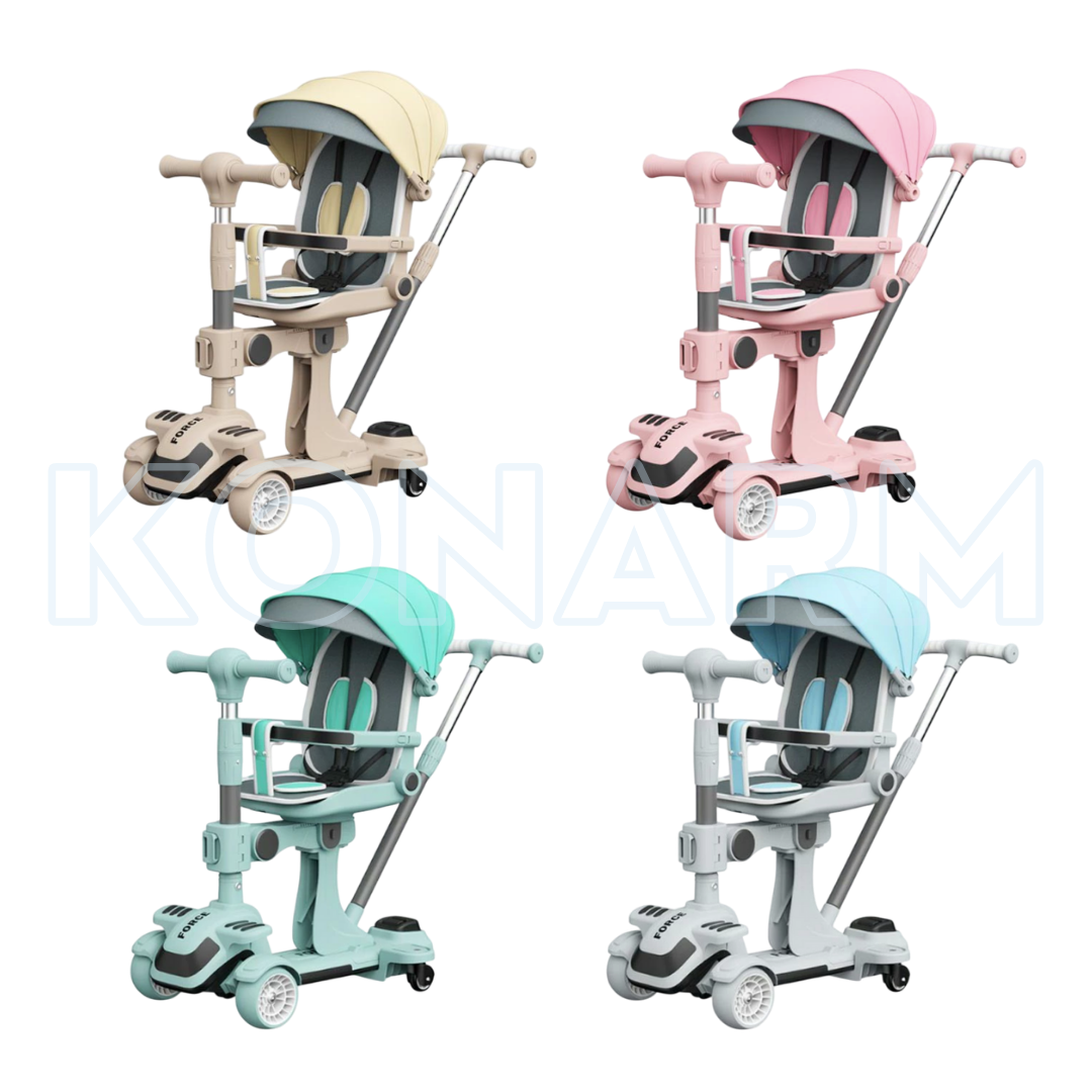 El Triciclo Scooter 6 en 1 con sombrilla es el aliado ideal para acompañar a tu pequeño en cada etapa de crecimiento. Su diseño multifuncional se transforma en triciclo con manija, triciclo clásico, bicicleta de equilibrio y scooter, adaptándose a sus necesidades. Incluye una práctica sombrilla/parasol que protege del sol en los paseos al aire libre, garantizando comodidad y seguridad. Con estructura resistente y diseño ergonómico, estimula el equilibrio, la coordinación y la independencia de manera divertida.